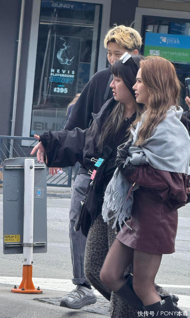 黑色尖头高跟长筒靴则是提升气场的关键单品,尖头设计增强了时尚感,高跟拉长了腿部线条,长筒的款式则与短裙形成 “上短下长” 的搭配,进一步优化了身材比例,让昆凌的高挑身形更加凸显。